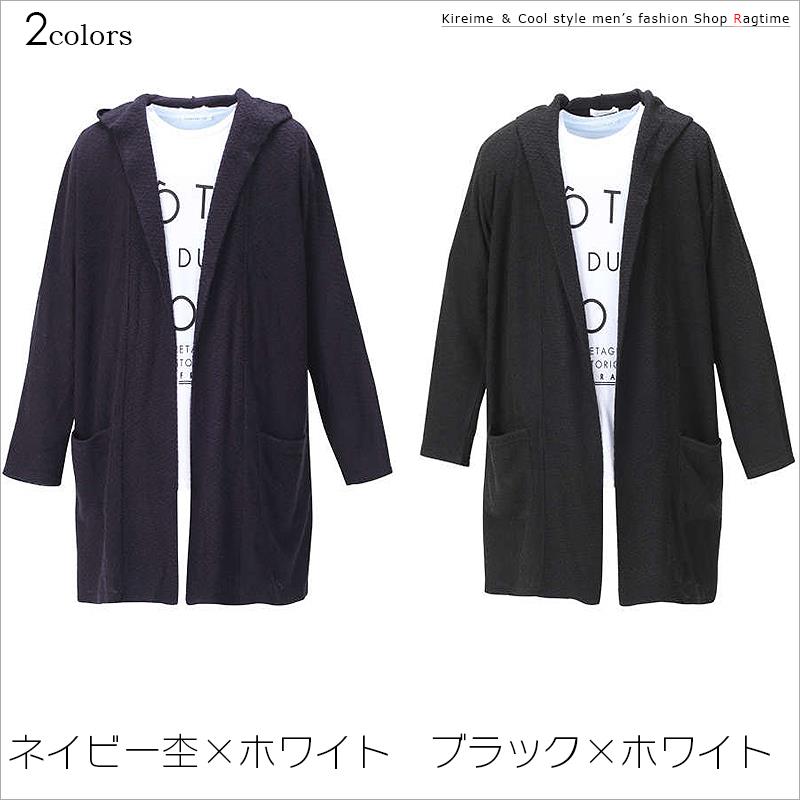 商品説明 表面にループをもたせた甘編みフード付きカーディガンとロンTeeのセット。